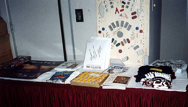 | TPOは、バンケット会場で行われたチャリティーオークションに2品を出品した。1つは出版に協力した書籍ピンボールグラフィティであり、5年間探していたという男性に110ドルで落札された。もう1品は、販売物として展示していたピンボールバッジ5個セットであり、こちらは55ドルで落札。 |