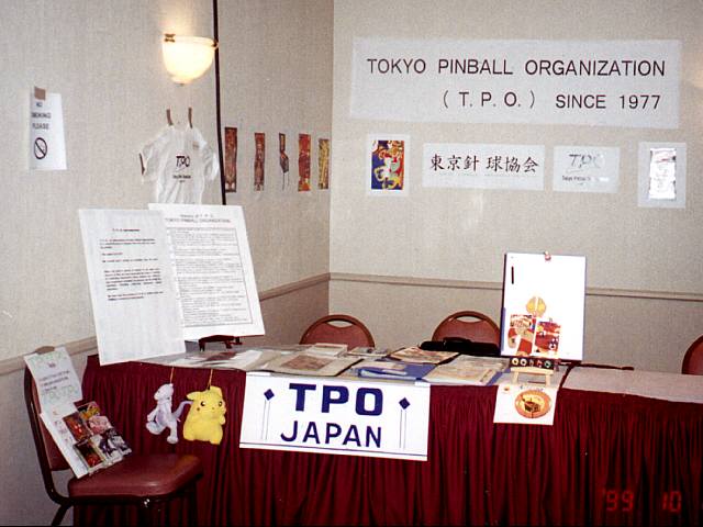 T.P.O.は、日本から初めてピンボールエキスポにブースを出展した。出展内容は、非営利団体であるので基本的に販売物はほとんどなく、TPOの活動紹介を中心とした展示内容とした。なお、隣のオランダのピンボール協会(DUTCH PINBALL ASSOCIATION)等は、活動紹介など何もなく、トレーナーやポスターなどの販売だけを行っていた。 TPOブースは、初日午後の展示会場オープン前に準備し、そこから土曜夜まで展示を行った。最終日の日曜の朝に完全撤去。 |