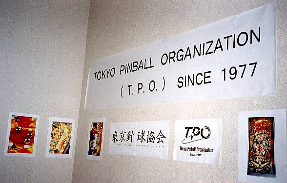 | TPOのブースをアピールするために、壁に、TPOの大弾幕と、見栄えがするカラーのピンボール写真を張った。また、パネルの近くにTPOのTシャツも張った。Tシャツは販売物ではありません。 |